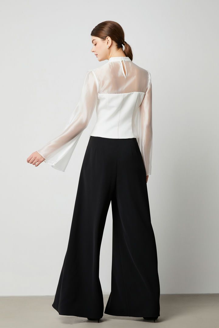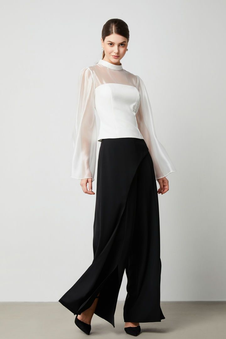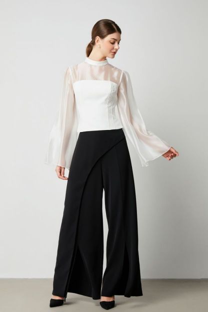 قصة واسعة الأرجل مع فتحات أمامية و طبقة على الخصر