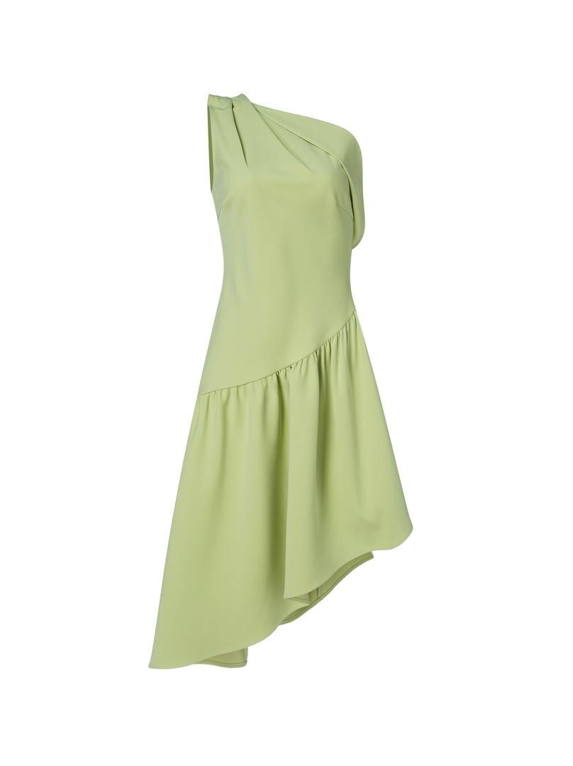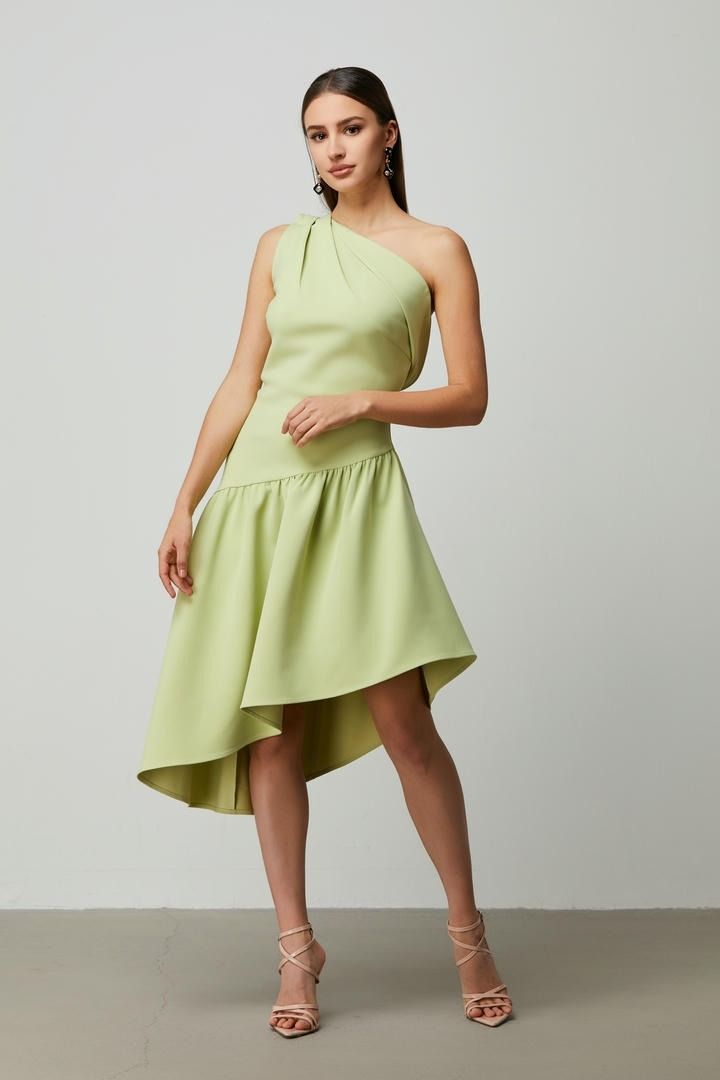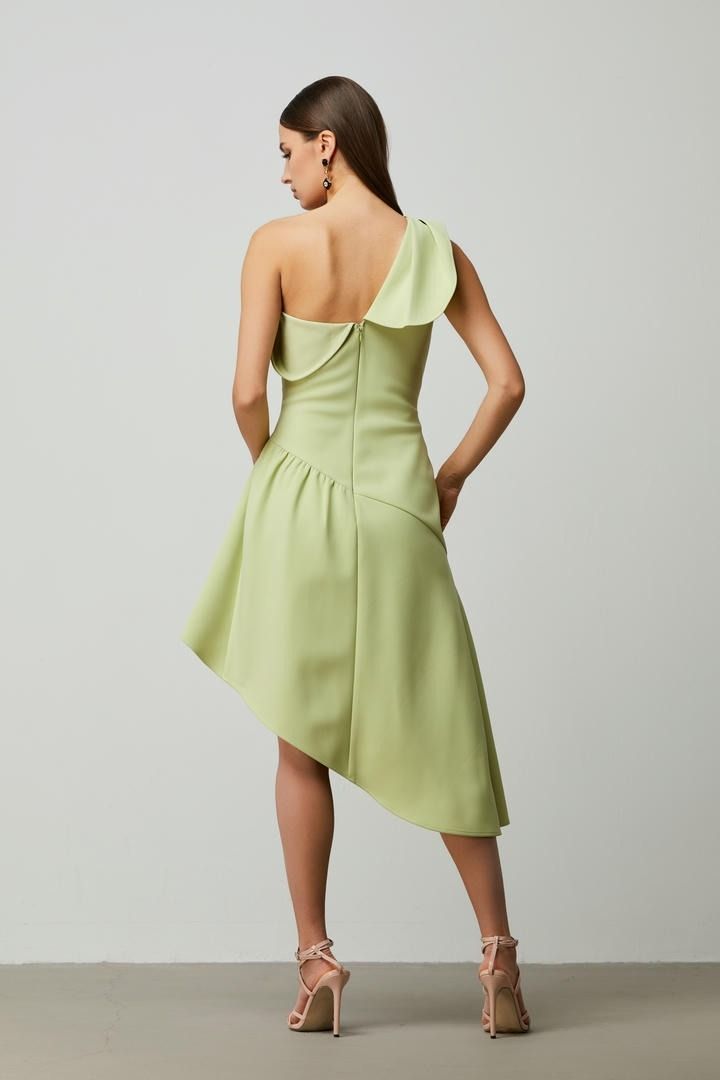 فستان كتف واحد باللون الأخضر الفاتح
