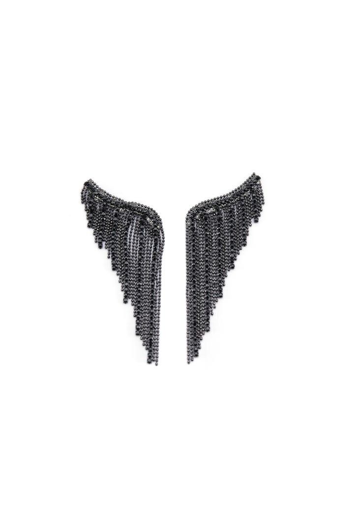 أقراط بارزة باللون الأسود بتفصيل بتفاصيل شراشيب