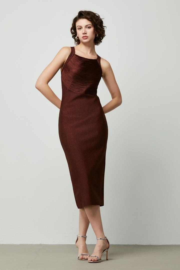 فستان متماسك ميدي بشراريب شوكولاتة