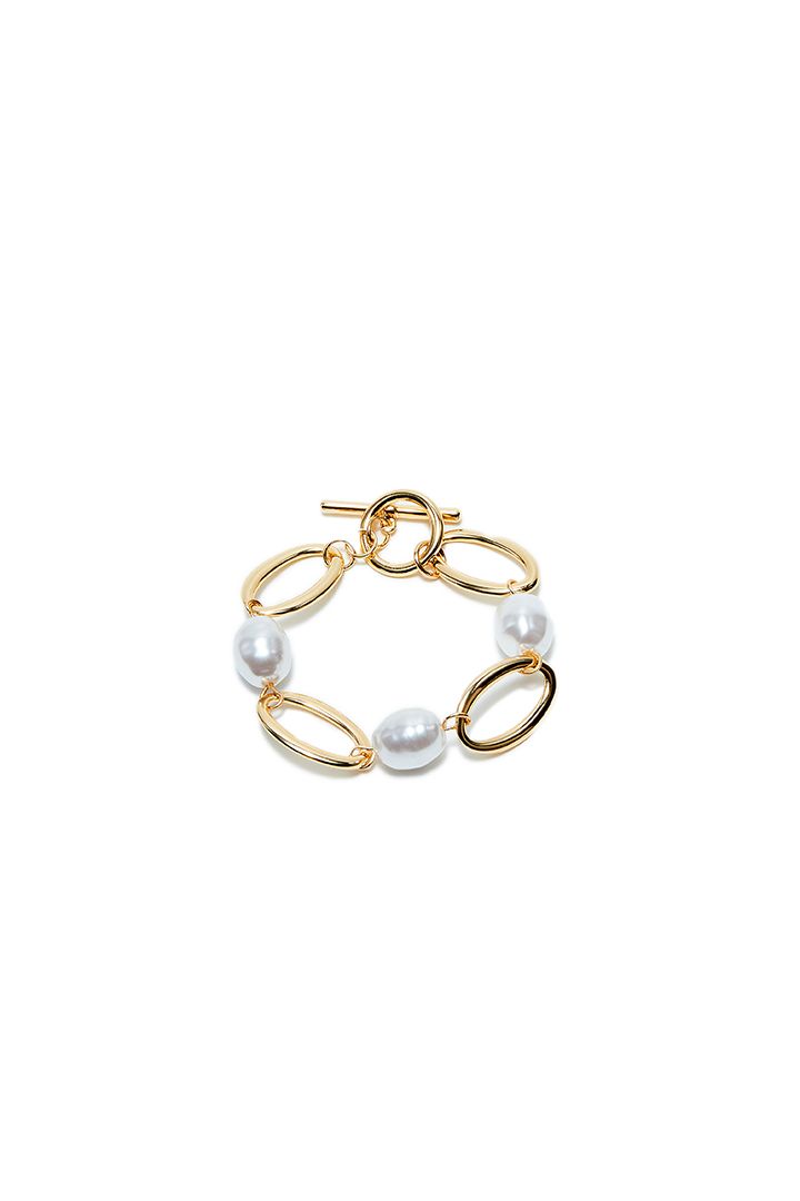 سلسال بشكل بيضاوي باللون الذهبي مزين باللؤلؤ المميز