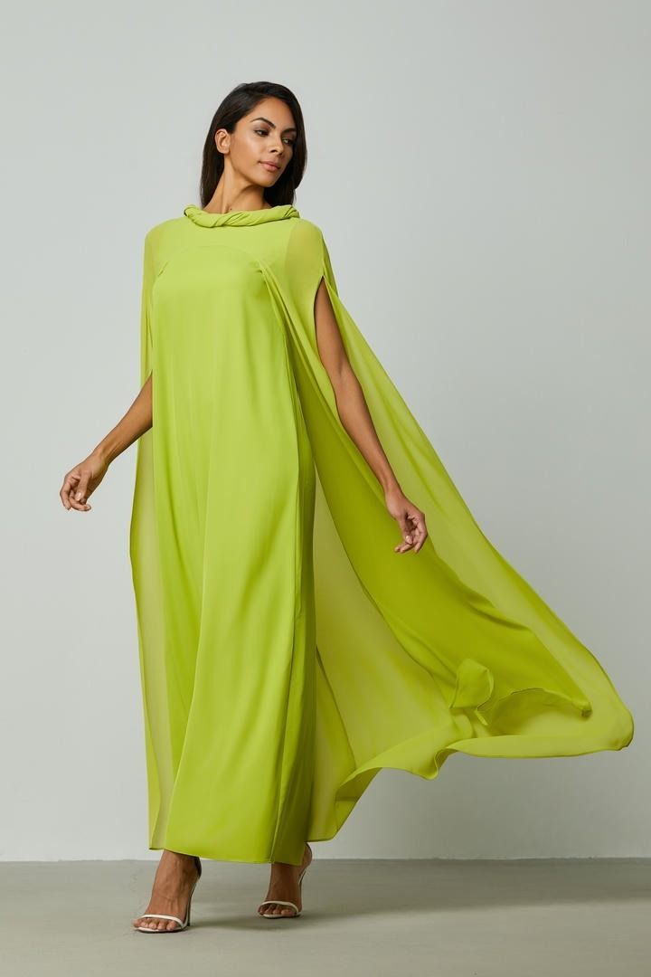 هذا القفطان الأنيق يتميز بنمط ملفوف شال منسدل، قصة فضفاضة وتصميم طويل ماكسيلينسجم مع الأناقة والراحة.