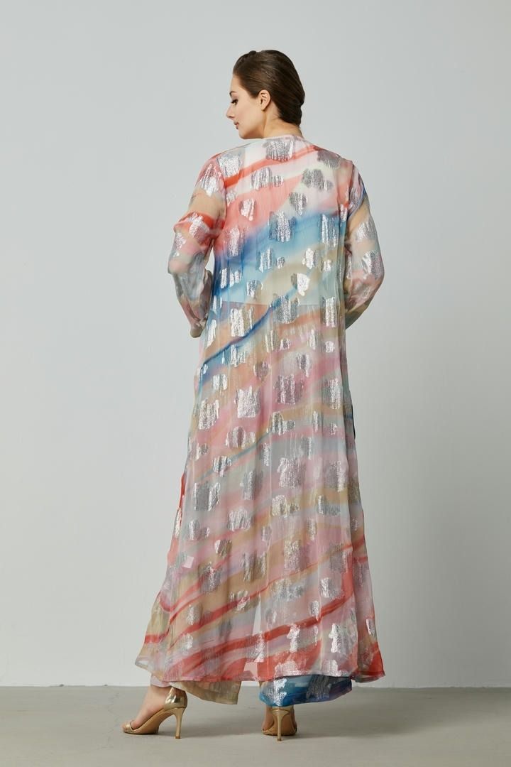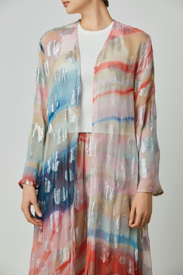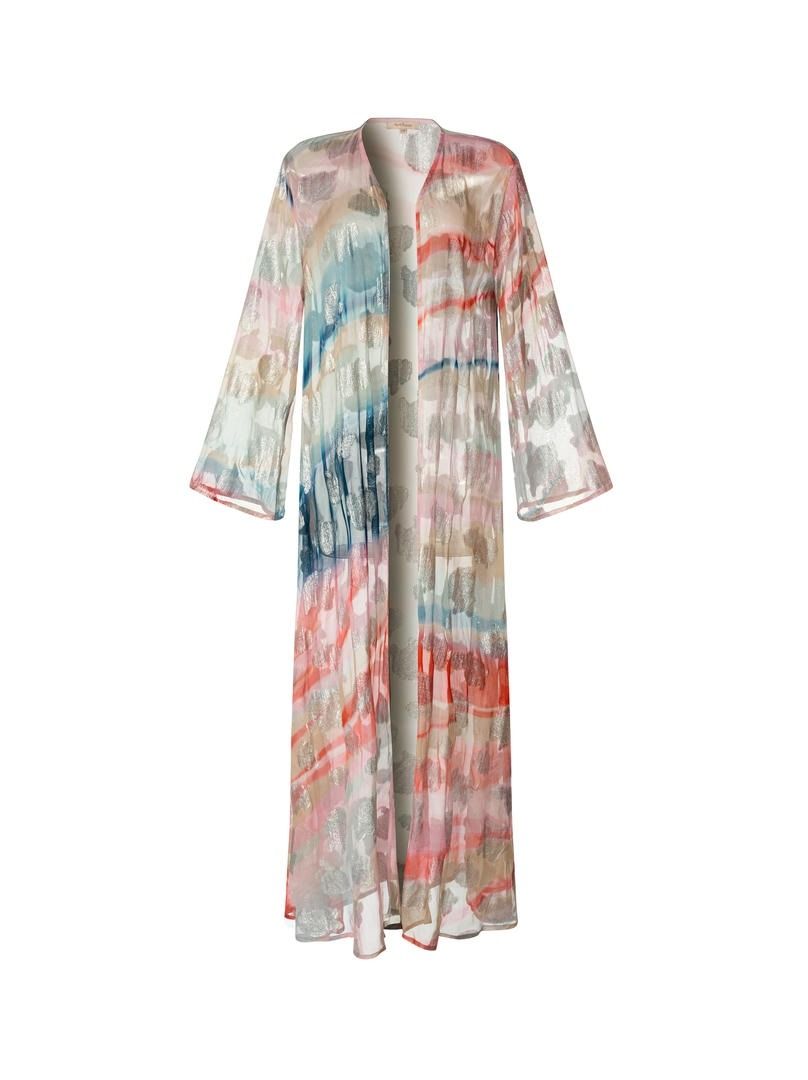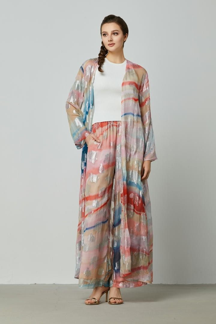 تتميز هذه كارديجان بأكمام طويلة وطول كامل، مع طباعة شاملة، مما يضيف لمسة أنيقة لأي إطلالة.