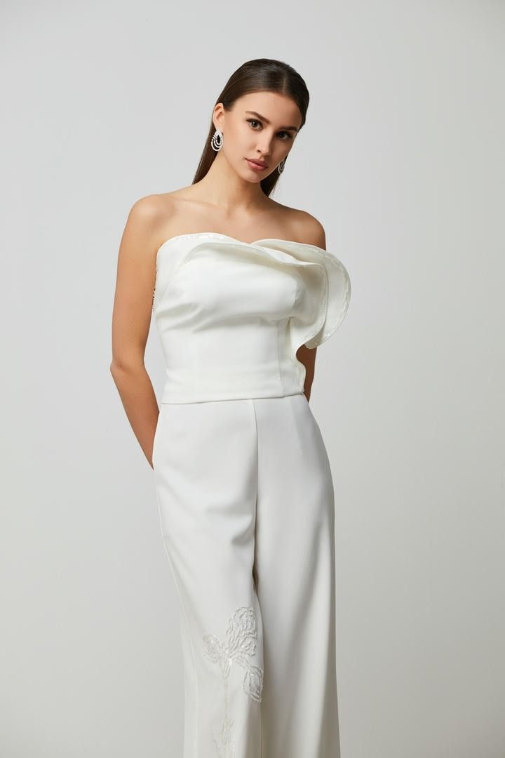 قطعة مميزة كورسيه على شكل زهرة مزين بالتطريزات. تصميم ضيق يعزز القوام، مع سحاب جانبي غير مرئي لإطلالة سلسة. يمكن تنسيقه مع بنطال من المجموعة لإطلالة راقية.