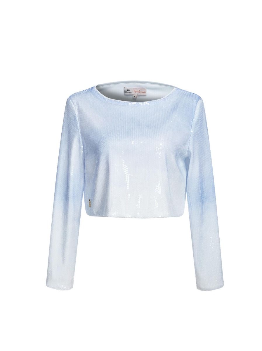 بلوزة برقبة قارب مع أكمام طويلة وشكل جسم مربع بطول قصير، يوفر مظهرًا عصريًا ومريحًا. مثالي للتنسيق مع تنورة من المجموعة.