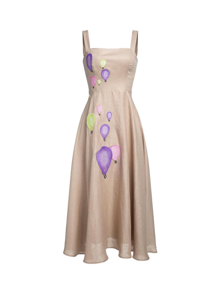 يتميز هذا المزيج الحالم من الأناقة والمرح بأكتاف مكشوفة وفتحة عنق مربعة . يبرز التصميم بدون أكمام الصدر الضيق، بينما تضيف الزخارف البالونية ثلاثية الأبعاد لمسة من الخيال. يتدفق هذا الفستان في تنورة ضخمة، مما يخلق صورة ظليه جريئة وأنثوية.