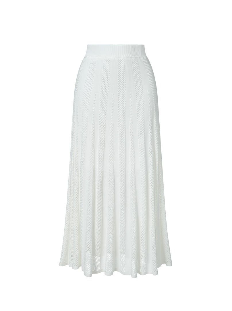 تنورة الكروشيه ستضفين لمسة من الأناقة والألوان إلى إطلالتك. تتميز بخصر عالٍ مرن وتصميم مطاطي، مع خطوط بلون متدرج جذاب.