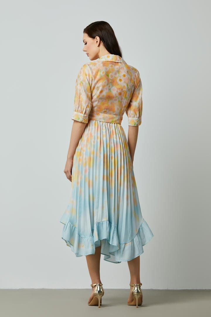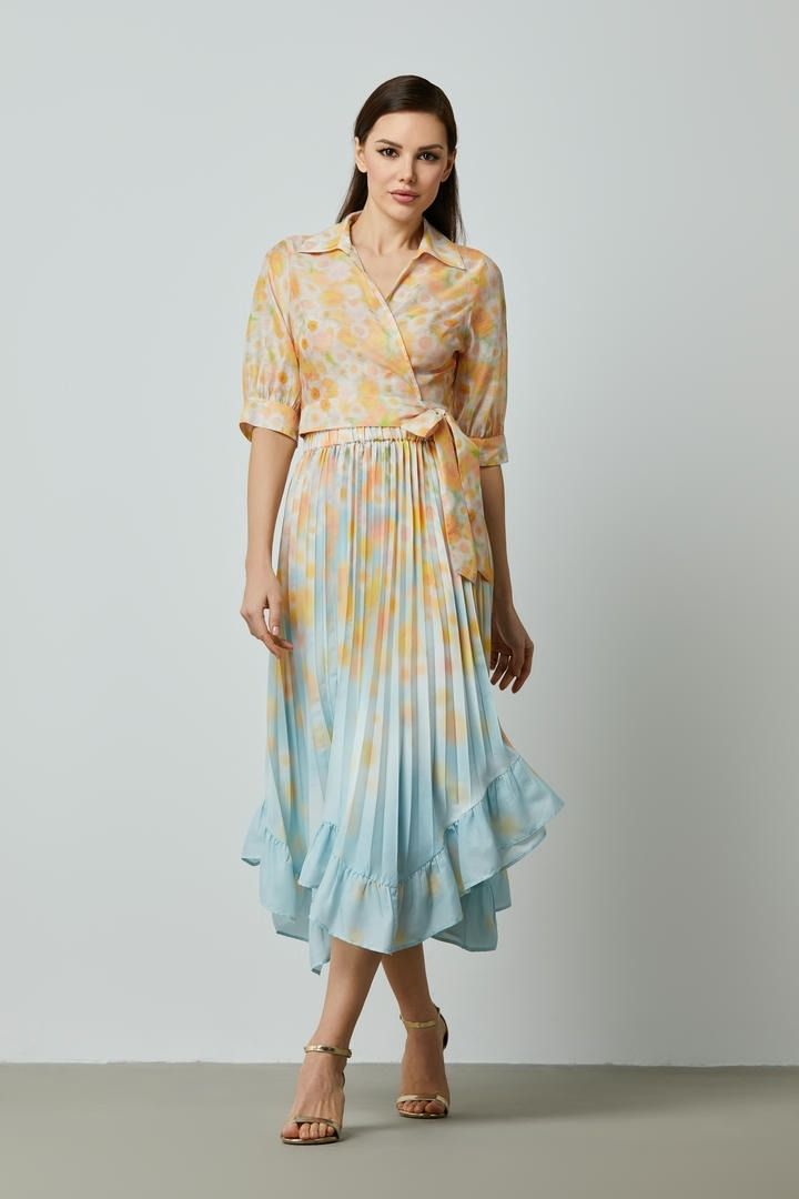 تجمع هذه التنورة ذات القصة A بين الأناقة والجاذبية بتصميمها البليسية ونقشتها المميزة. يوفر الخصر المطاطي راحة مثالية، بينما تضيف الكشكشة في الحافة غير المتماثلة لمسة مرحة ورقية. ارتديها مع بلوزة مطابقة للحصول على إطلالة متناسقة