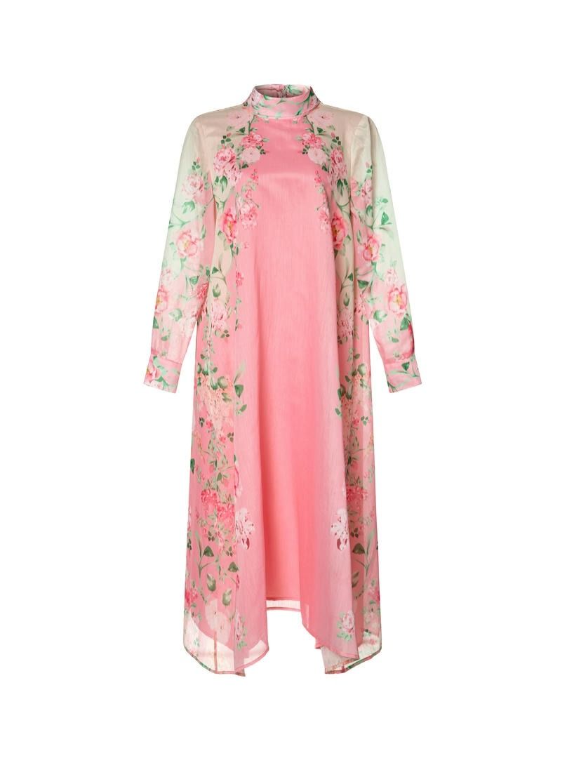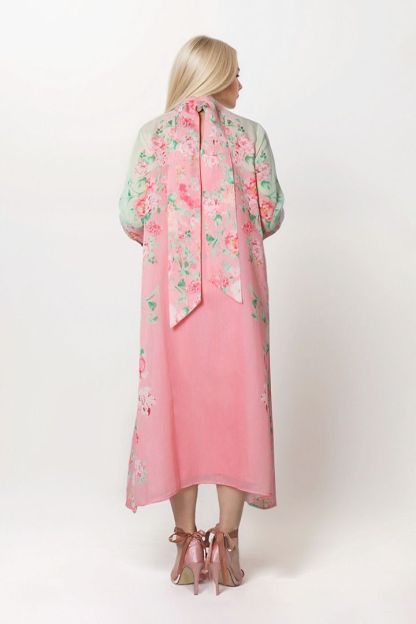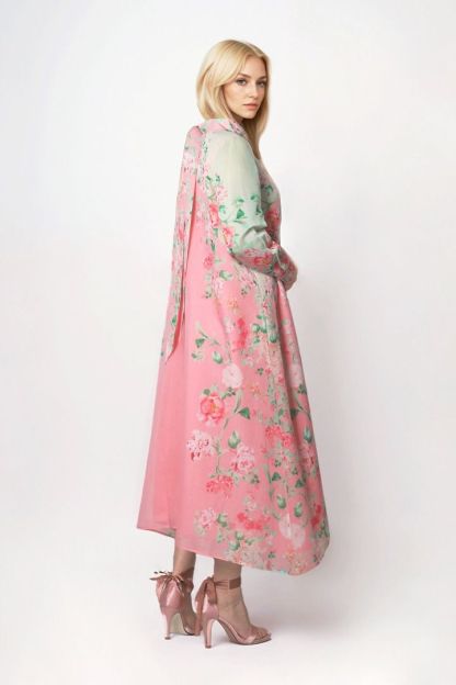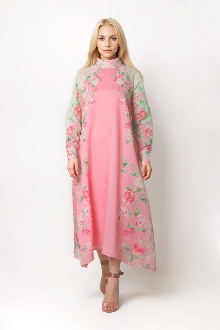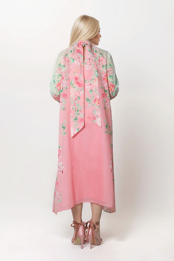قفطان جميل مصمم على شكل فستان ميدي بقصة A وقصة واسعه مما يمنحه مظهراً أنيقاً وانسيابياً. يتميز بأكمام طويلة لإطلالة أنيقة. يحتوي القفطان على وشاح في الخلف، مما يضيف لمسة فريدة وجذابة. وتظهر طباعة بتصميم فريد كأبرز ميزة، مما يجعله قطعة مميزة وفريدة من نوعها.