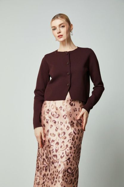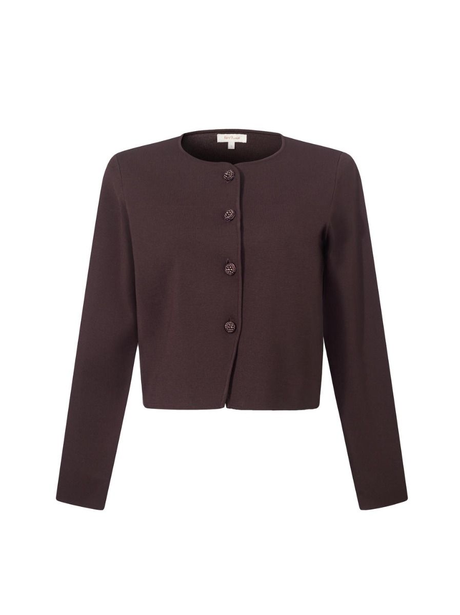 يتميز هذا الكارديجان الجذاب بفتحة عنق دائرية وأكمام طويلة. مصمم بأزرار على شكل زهور، بينما يضيف الطول القصير لمسة عصرية