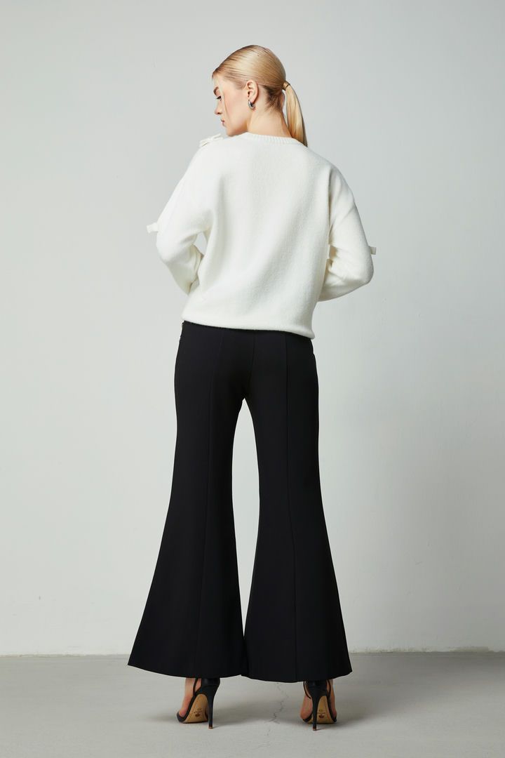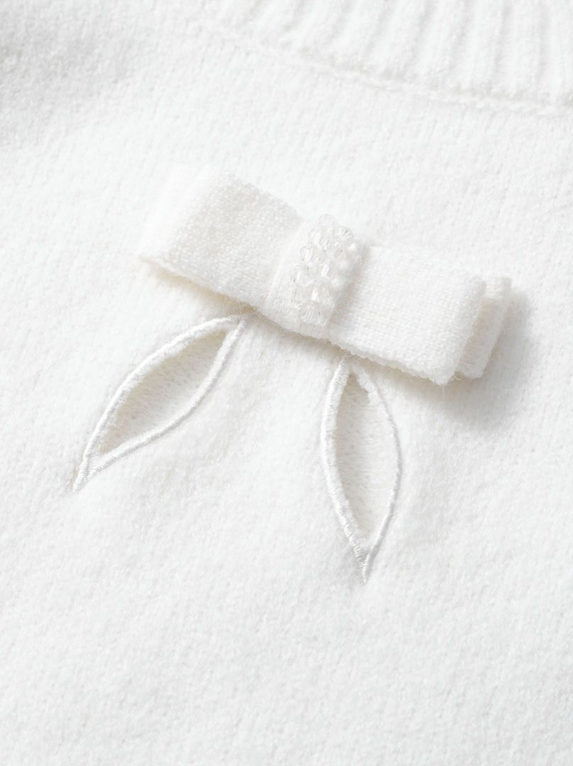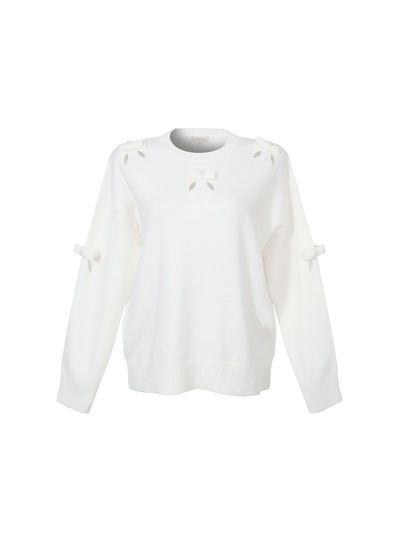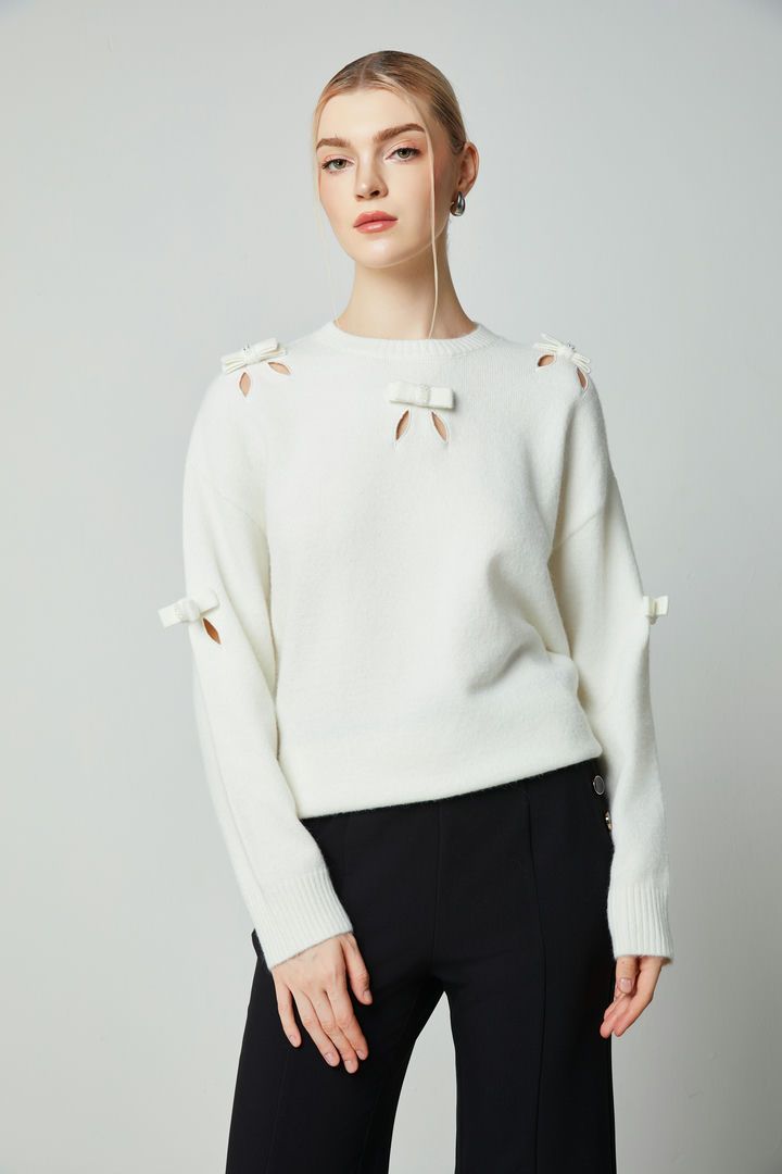 تتميز هذه الكنزة بياقة دائرية وقصة فضفاضة بأكمام طويلة. تضيف قصات التطريز وتفاصيل الفيونكات لمسة من الأناقة، مما يجعلها خيارًا مثاليًا لإطلالة مميزة.